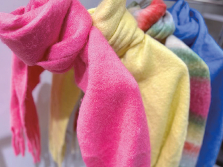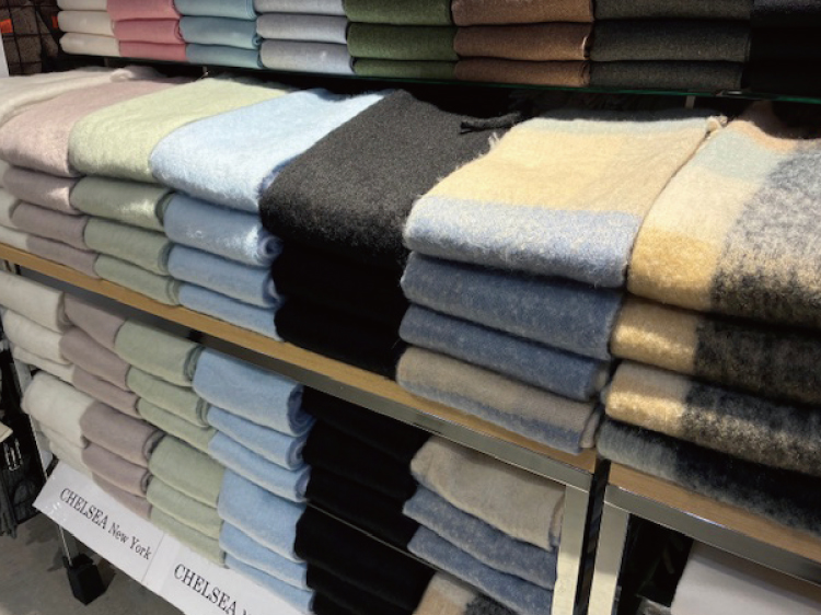 柔らかくしなやかな質感の起毛ウール混マフラー。